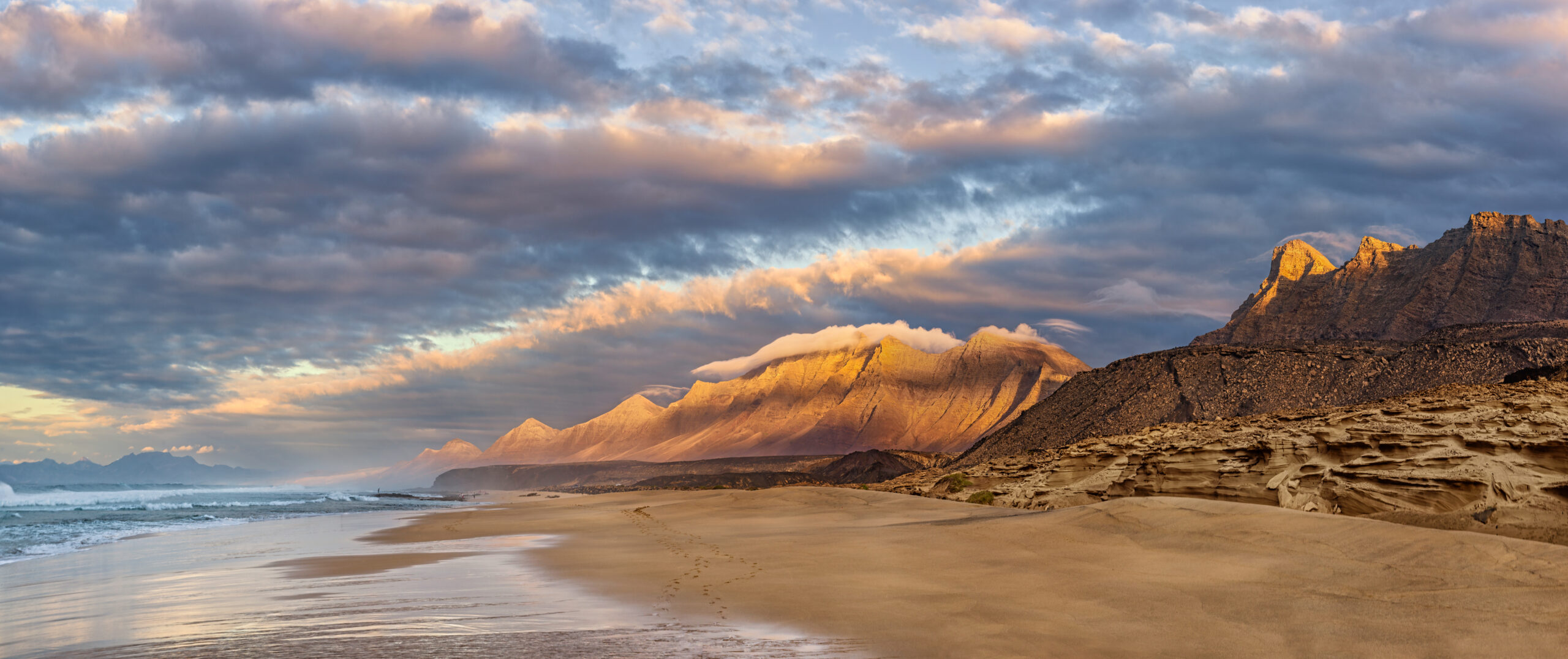 Las playas son otro de sus grandes tesoros. Desde las salvajes y solitarias de Cofete, en el sur, hasta pequeñas calas como Bajo de la Burra, en El Cotillo, donde las olas depositan rodolitos (fragmentos de algas coralinas) que cubren la arena como si fueran palomitas. Fuerteventura es un paraíso para los deportes acuáticos: surf, windsurf, kitesurf y submarinismo encuentran aquí unas condiciones privilegiadas casi todo el año.