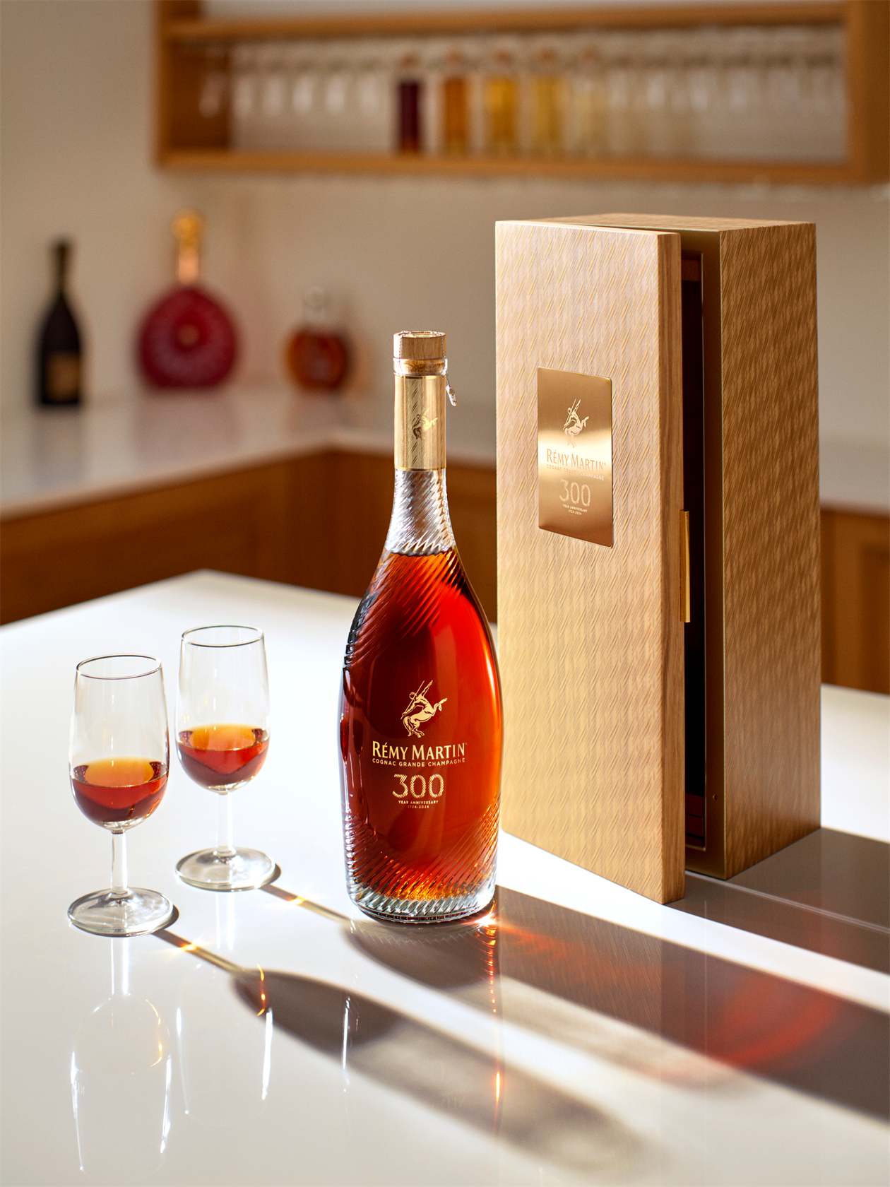Elaborado a partir de una selección de los aguardientes de Grande Champagne más armoniosos y elegantes de sus bodegas, Coupe 300º Aniversario pretende introducir en la botella el pasado y el presente de Rémy Martin, para que los amantes del coñac saboreen el auténtico legado de la casa.